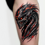 Tetování ohnivý predátor na stehně