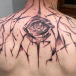 Tetování oko a čáry na zádech