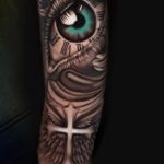 Tetování oko a kříž na předloktí