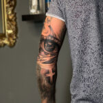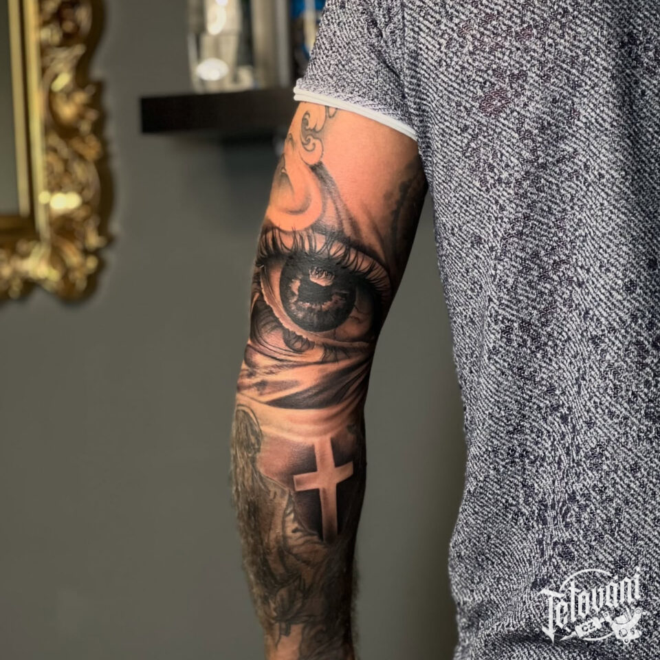 Tetování oko a kříž na rukáv