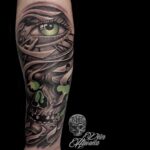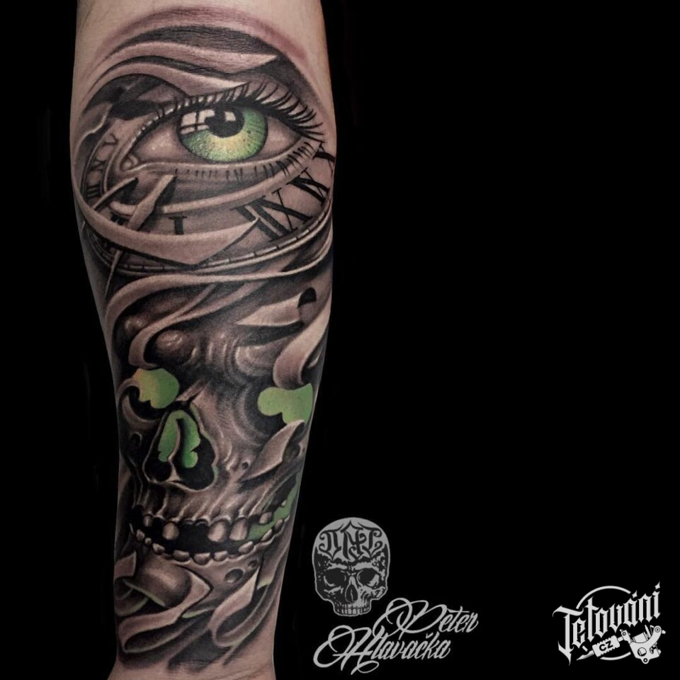 Tetování oko a lebka na předloktí