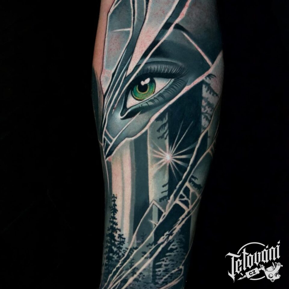 Tetování oko a příroda les na předloktí