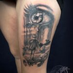 Tetování oko a rodina, děti na stehno