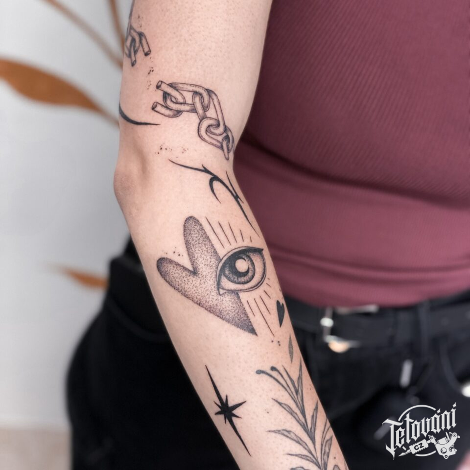 Tetování oko a srdce na předloktí