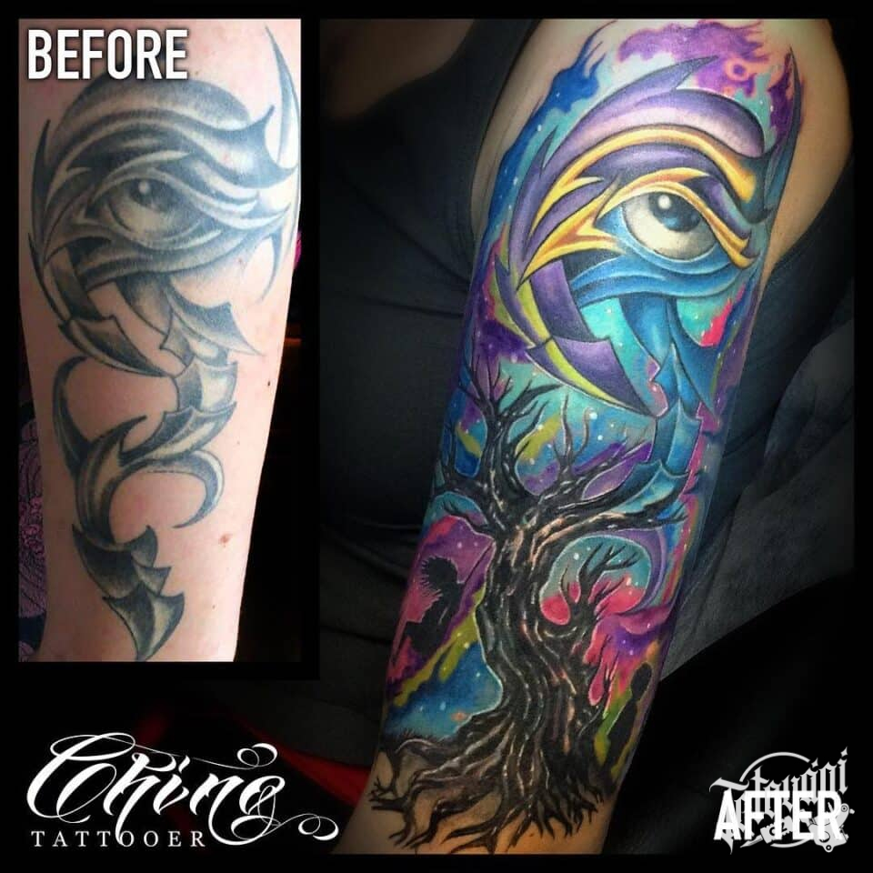 Tetování oko a strom na rukáv