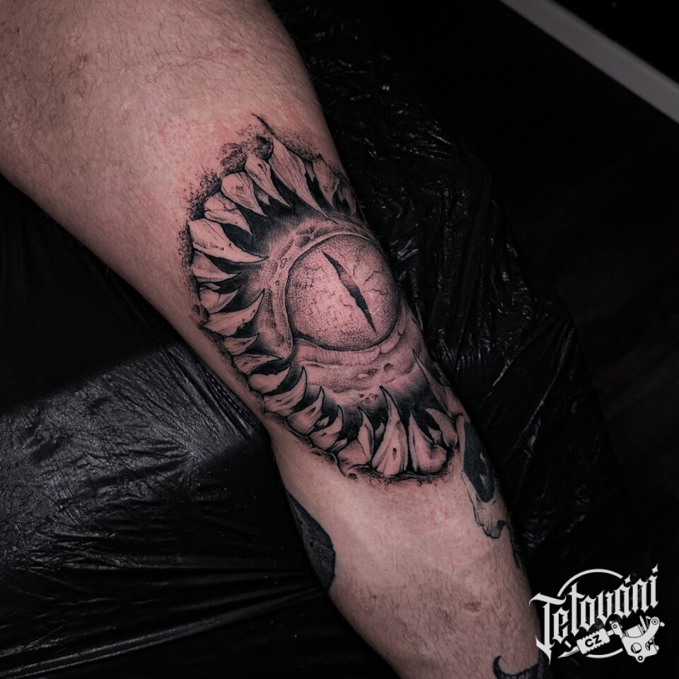 Tetování oko hada na koleno