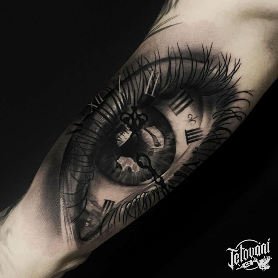 Tetování oko, hodiny a č...