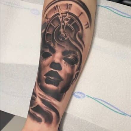Tetování oko, hodiny a čas na předloktí