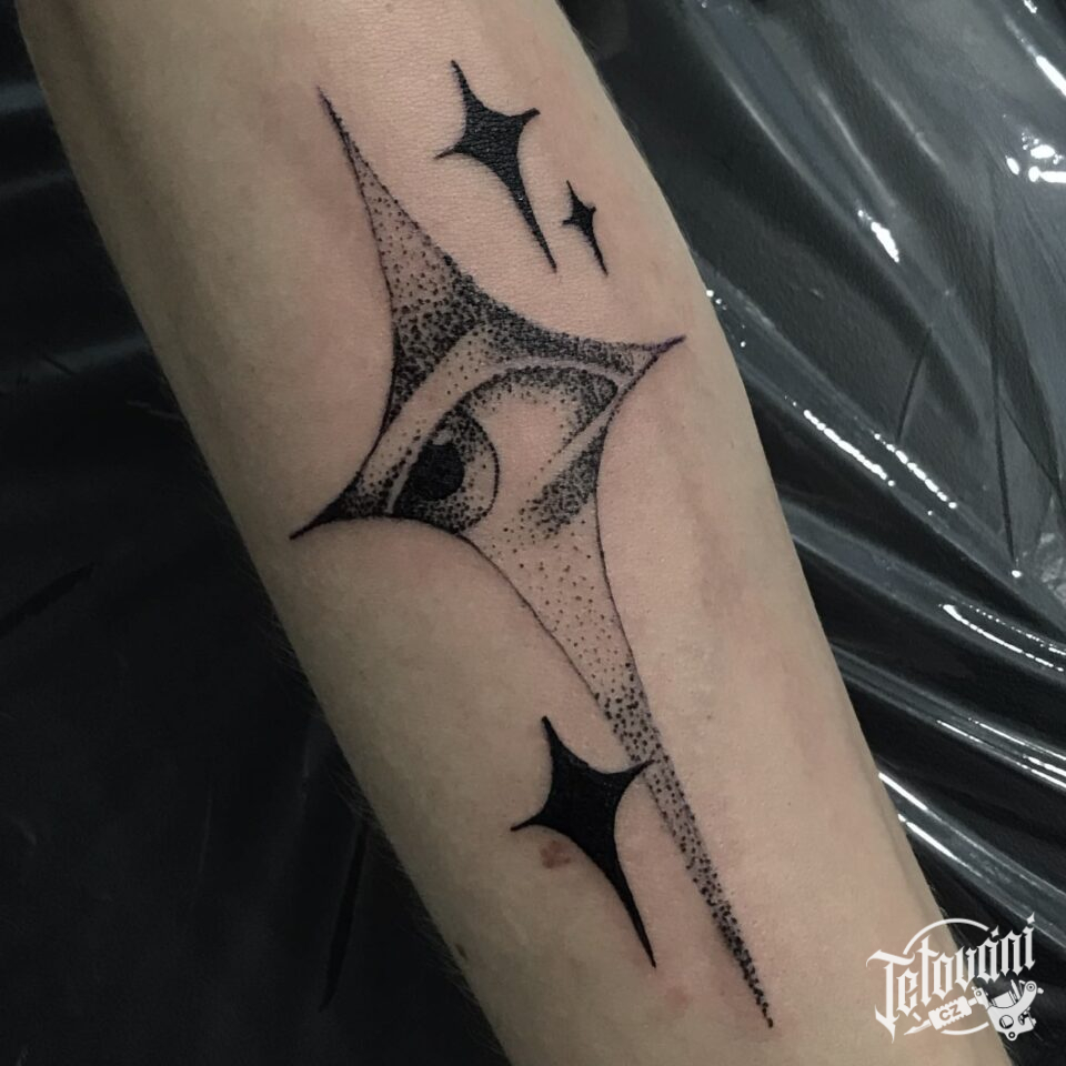 Tetování oko, hvězdy na předloktí
