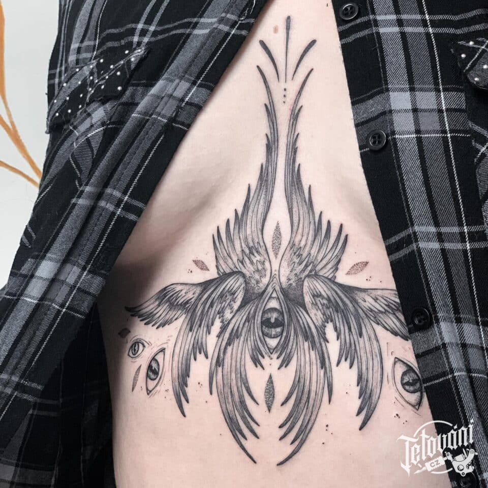 Tetování oko, křídla na...