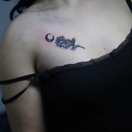 Tetování oko, měsíc na rameno