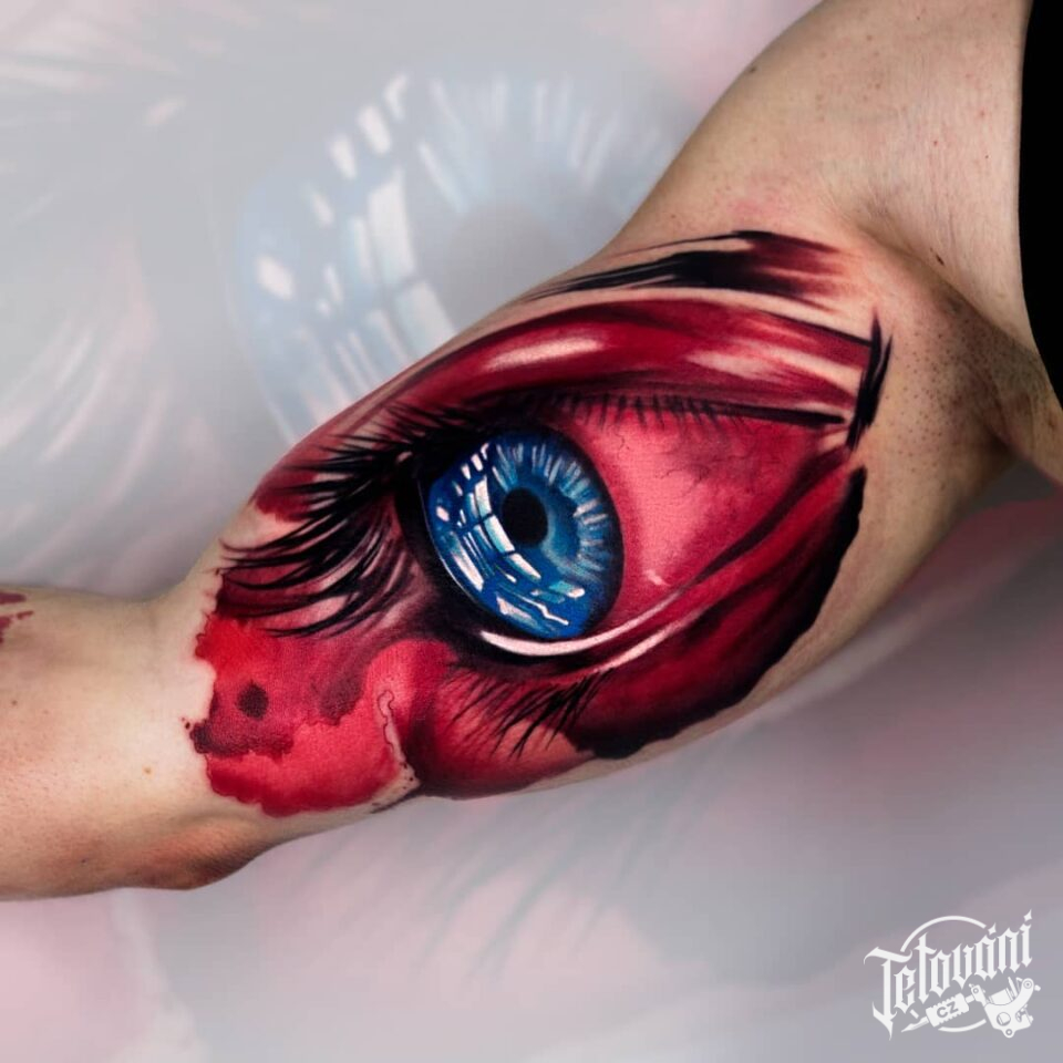Tetování oko na bicepsu