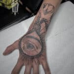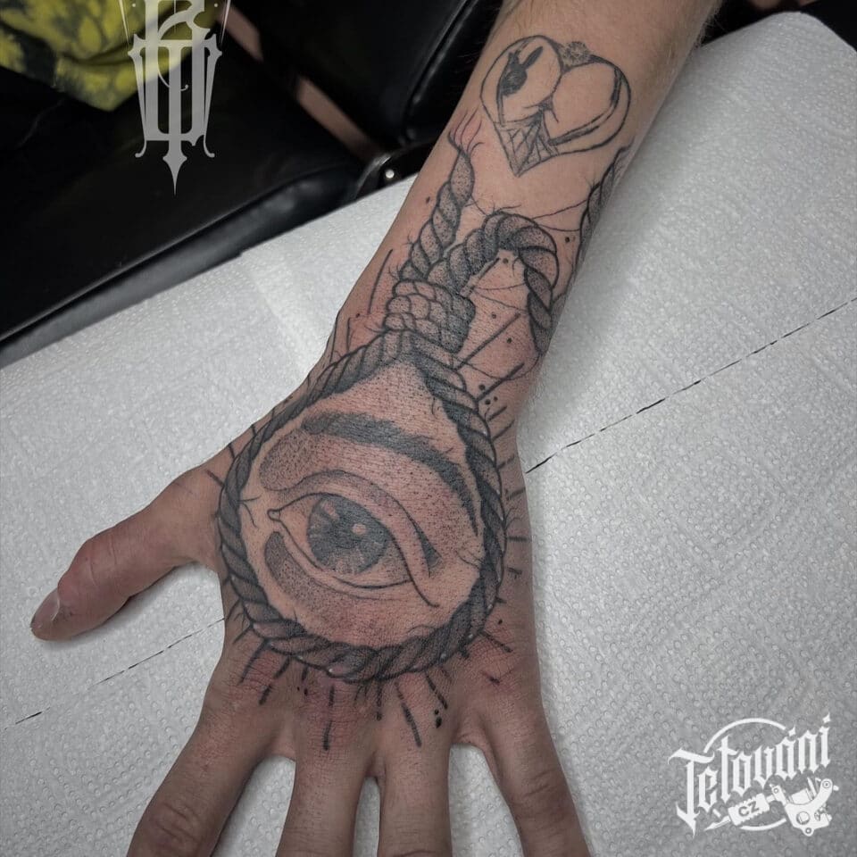 Tetování oko na hřbetu ruky