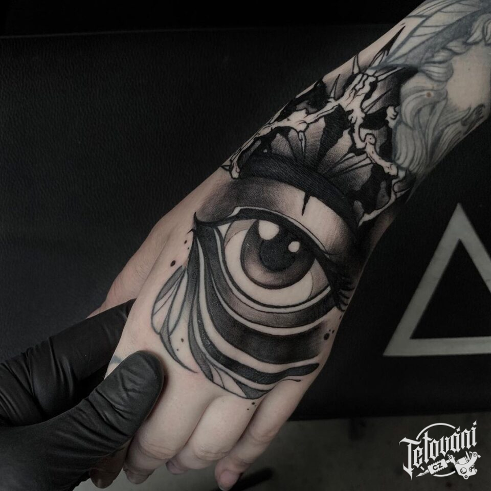 Tetování oko na hřbetu ruky