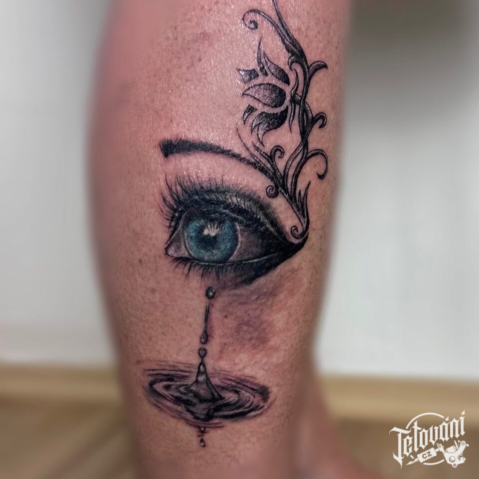 Tetování oko na lýtko