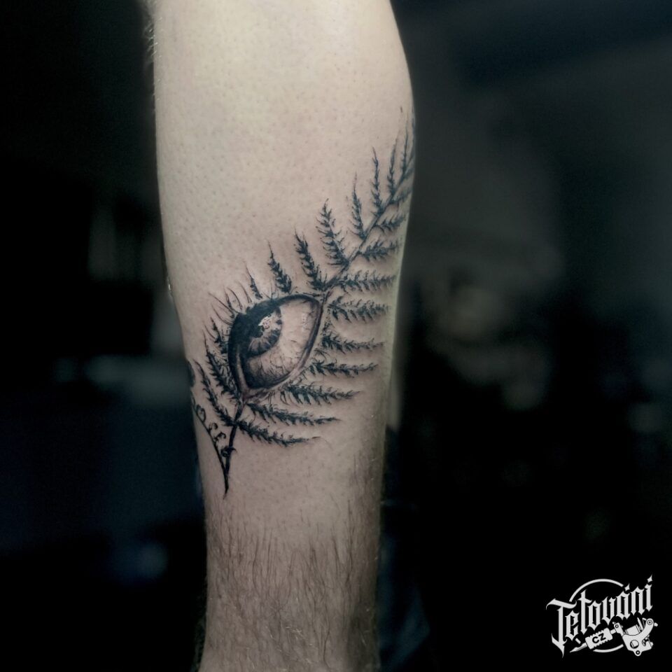 Tetování oko na lýtku