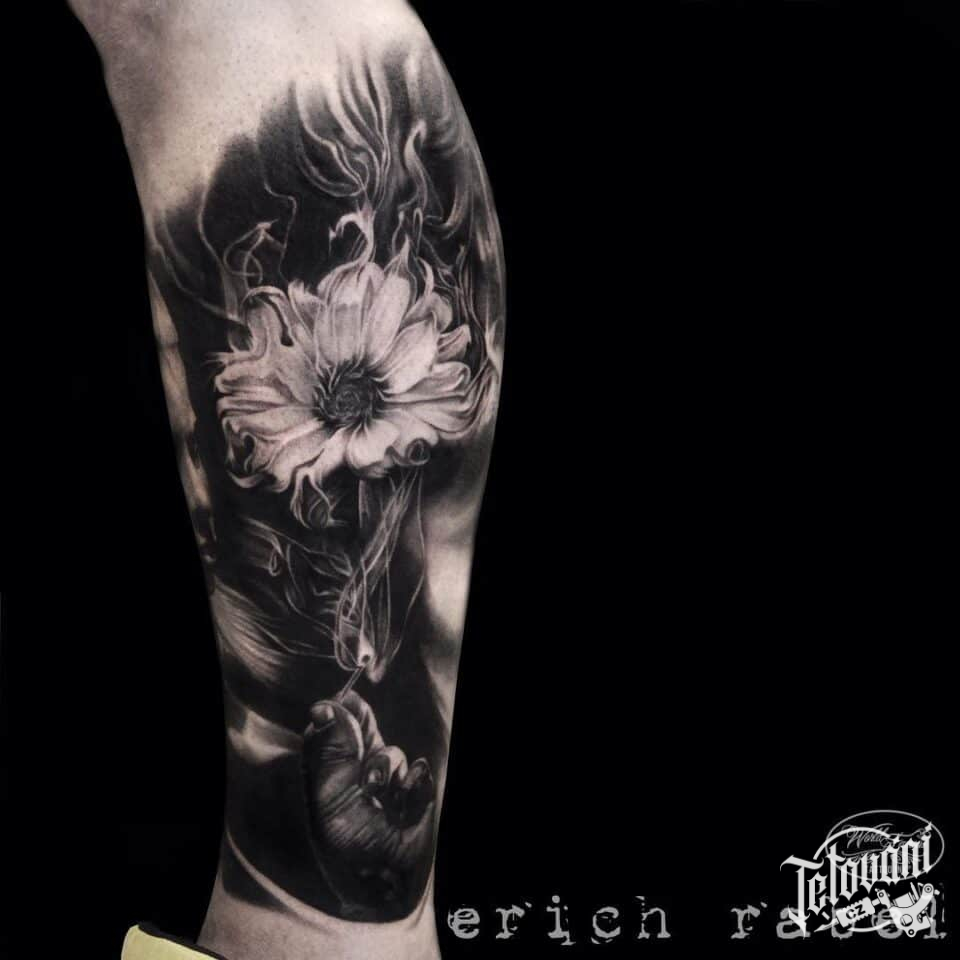 Tetování květina na lýtku