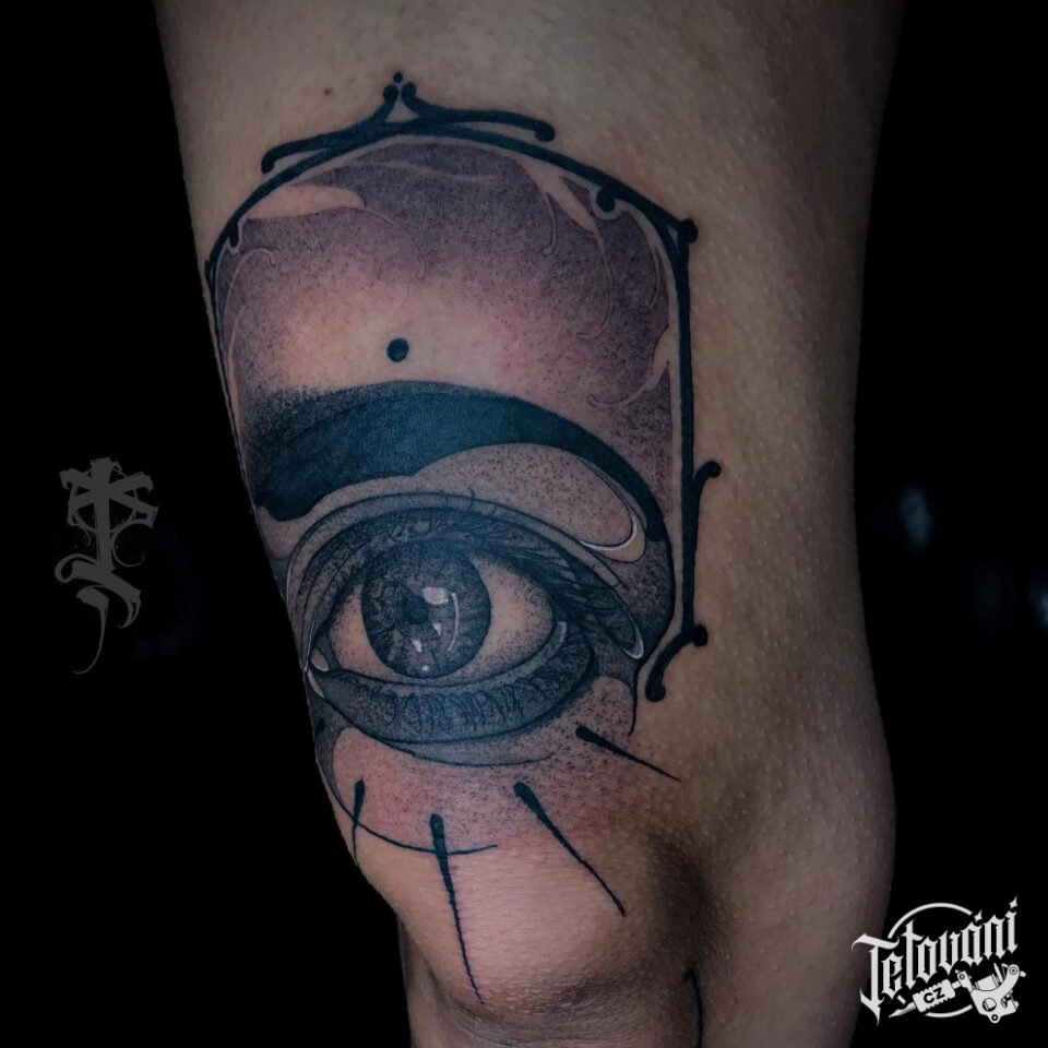 Tetování oko na stehně