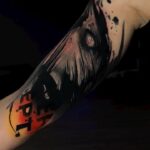 Tetování oko, nápisy na paži