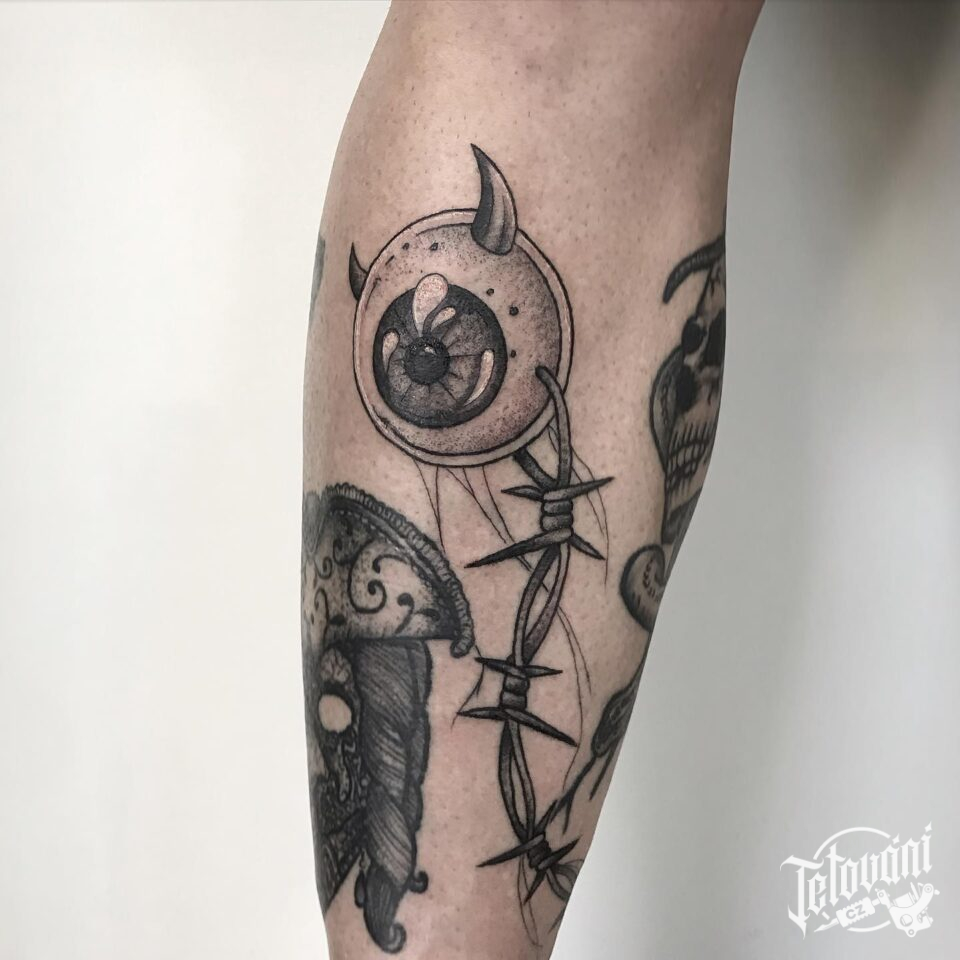 Tetování oko, ostnatý drát na předloktí