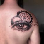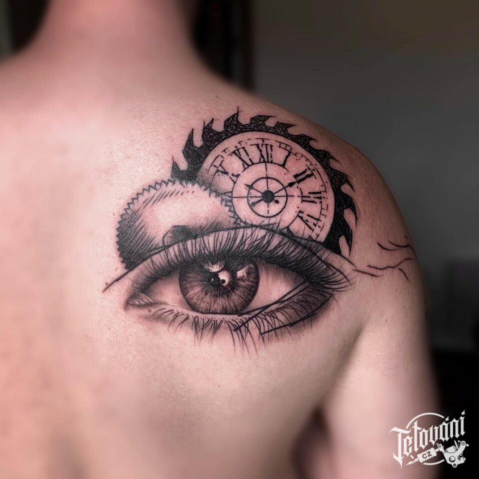 Tetování oko s hodinami na lopatce