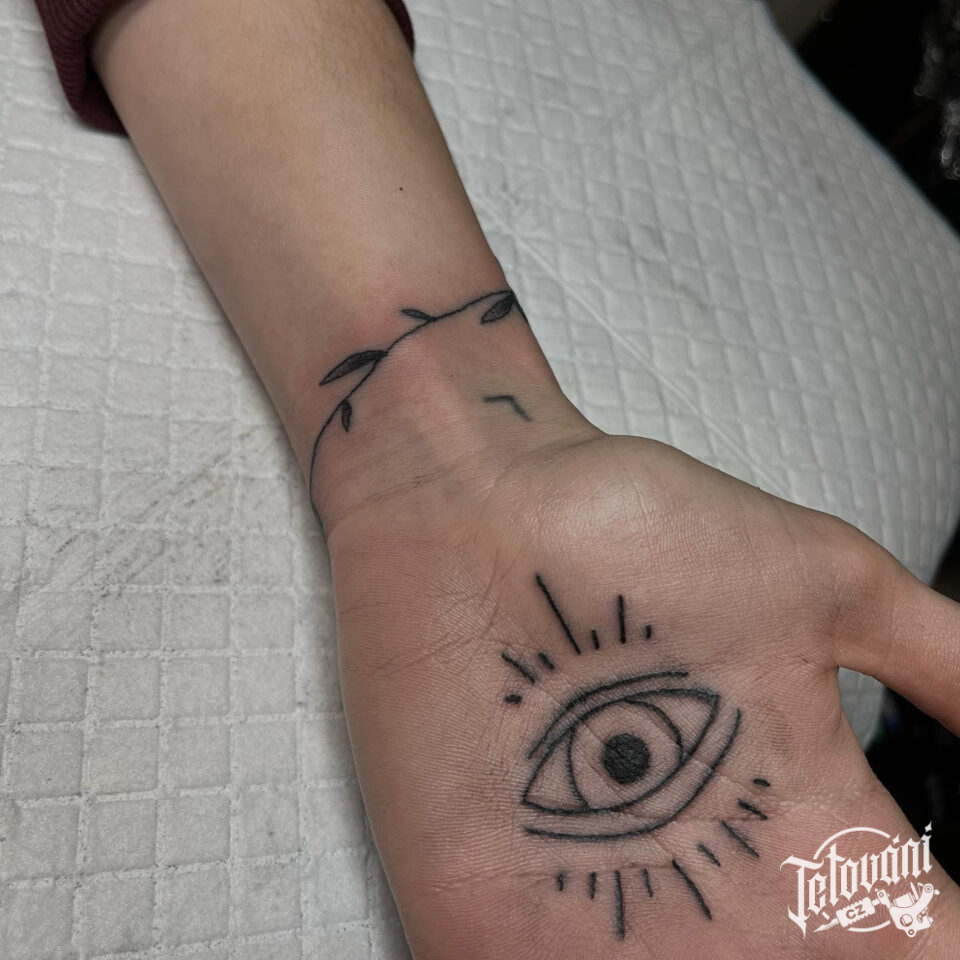 Tetování oko s paprsky na dlaň