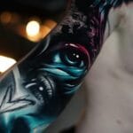 Tetování oko slza a srdce na paži
