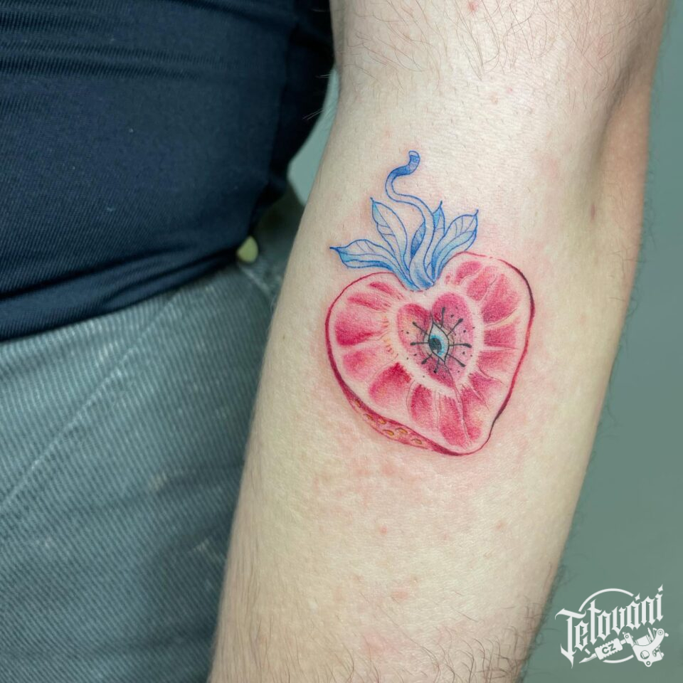 Tetování oko v jahodě na předloktí
