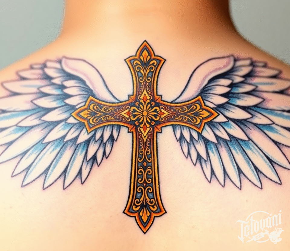 Tetování okřídlení kříž na záda