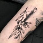 Tetování olivy a nůž symbol síly a zdraví