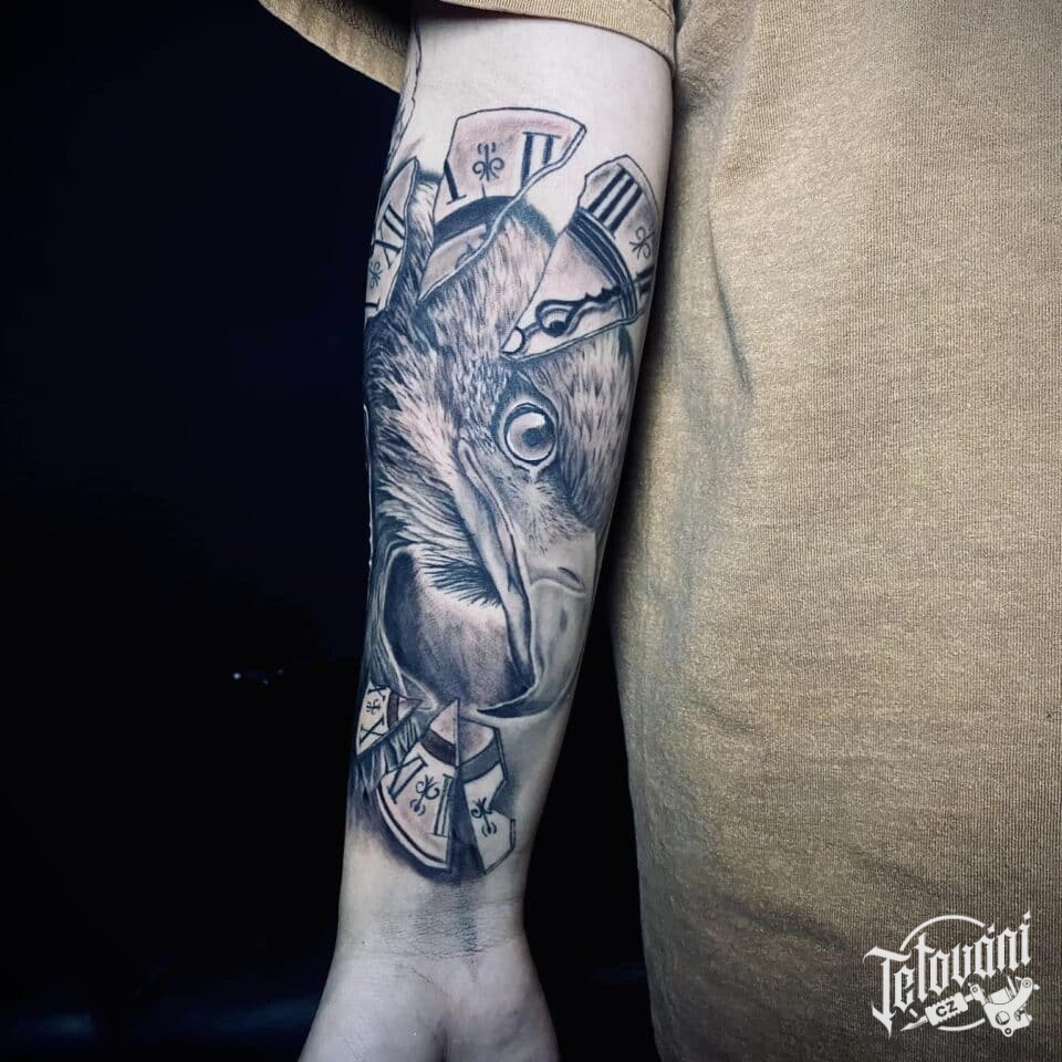 Tetování orel, hodiny na předloktí