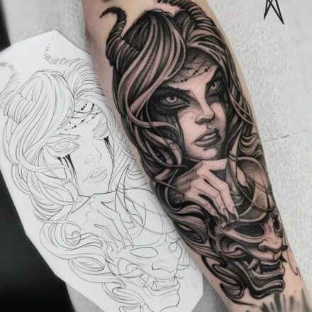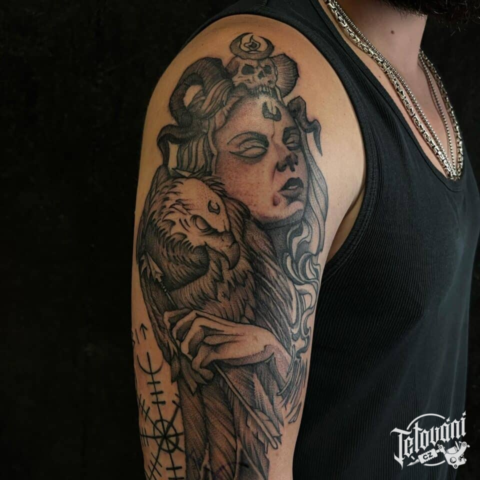 Tetování orel, nadpřirozená bytost čarodějnice na rameno