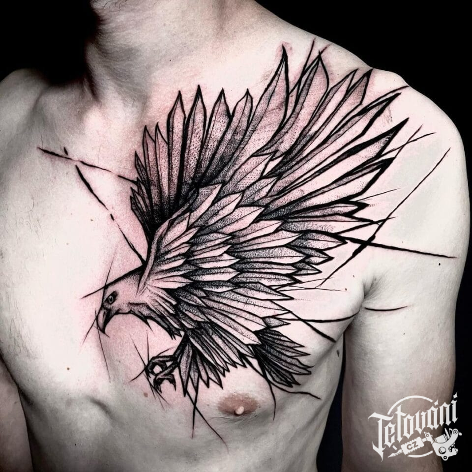 Tetování orel s křídly na prso