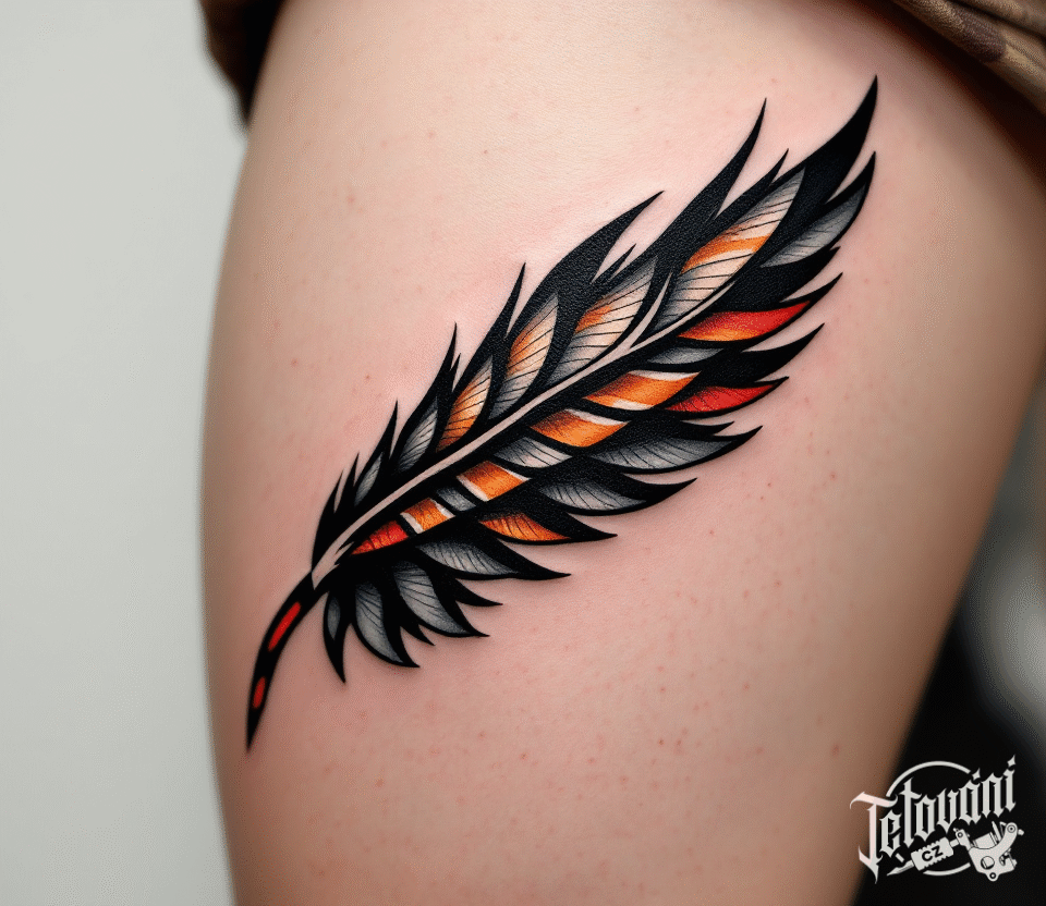 Tetování orlí peří na stehno