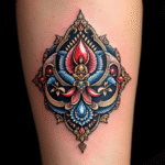 Tetování ornament, buddhistické znaky a symboly na předloktí