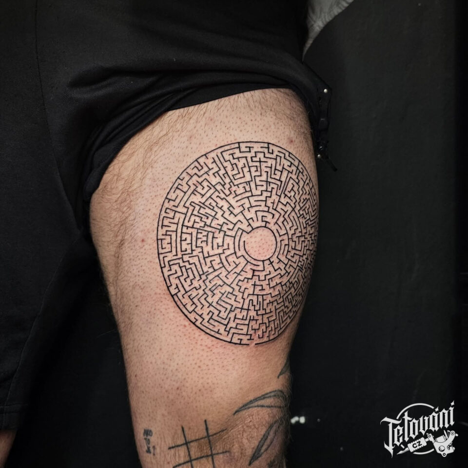 Tetování ornament, labyrint na stehně