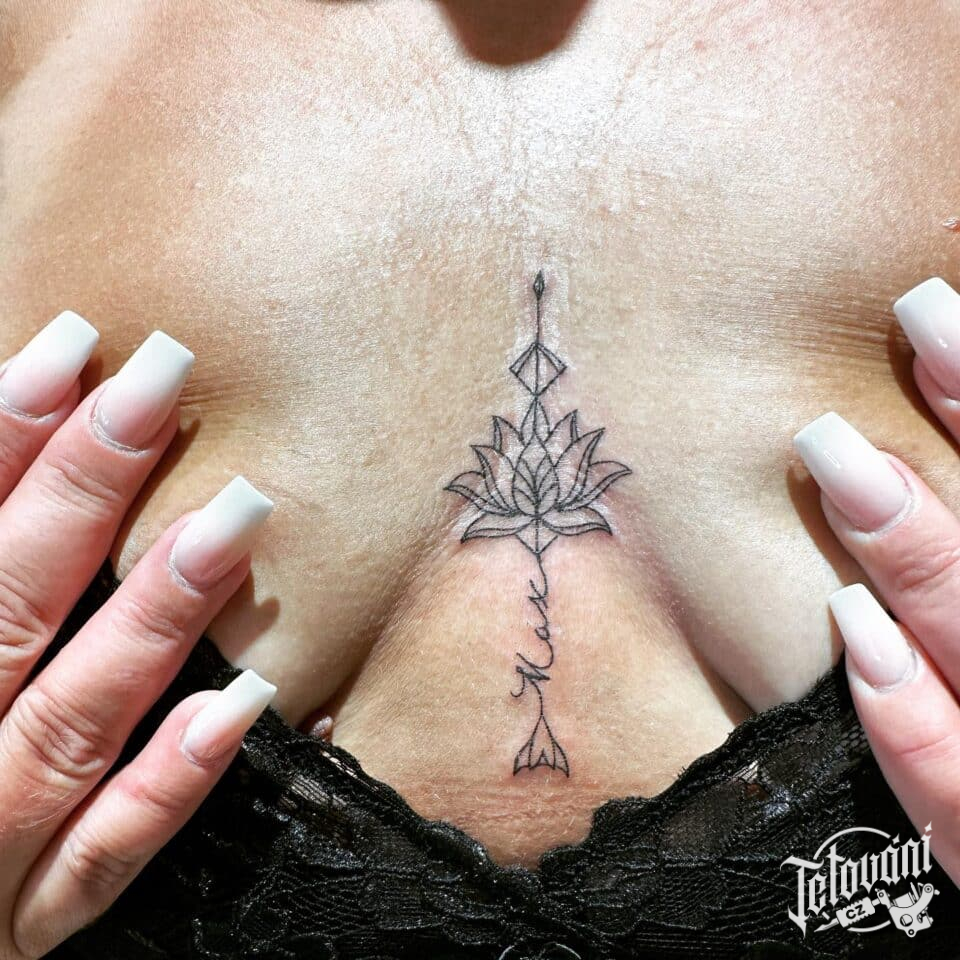 Tetování ornament mezi prsa