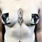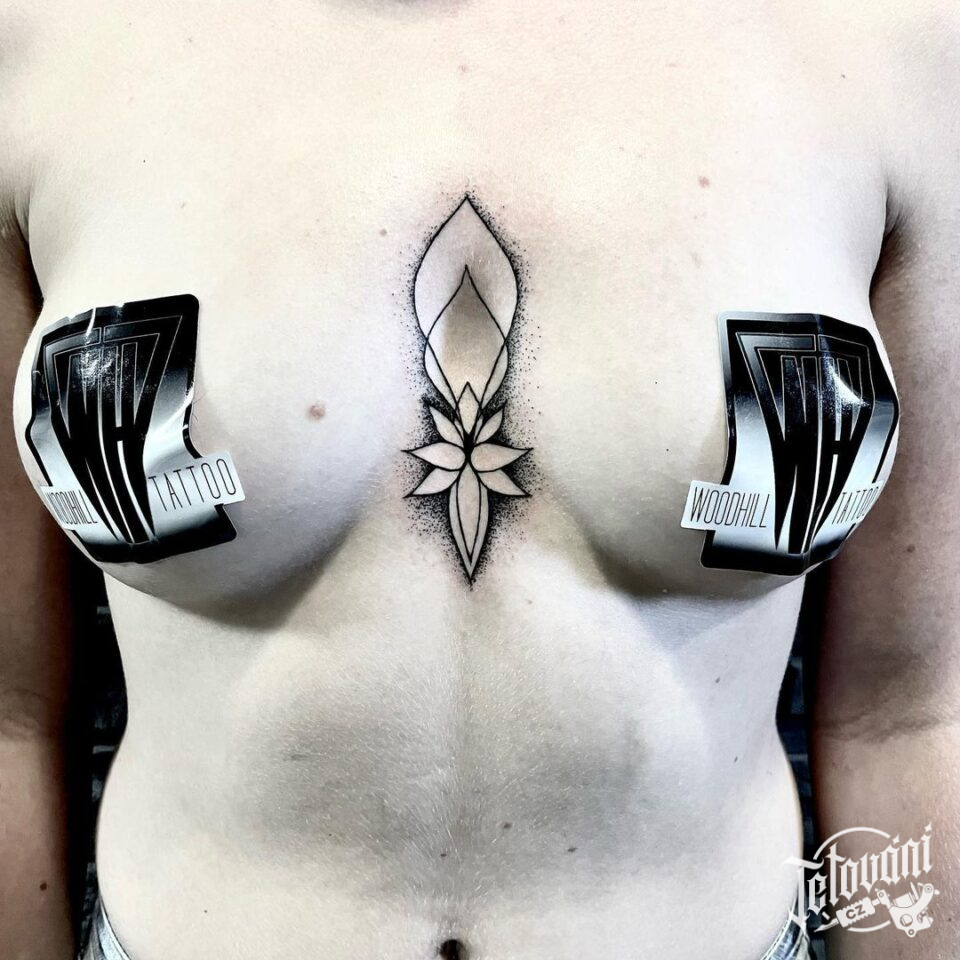 Tetování ornament mezi prsa