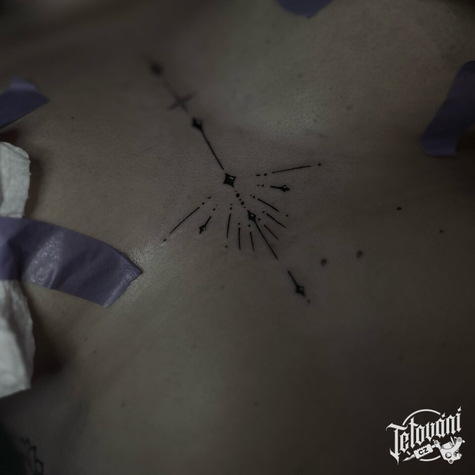 Tetování ornament mezi prsa