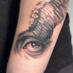 Tetování oko a křídlo na předloktí