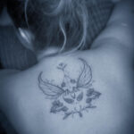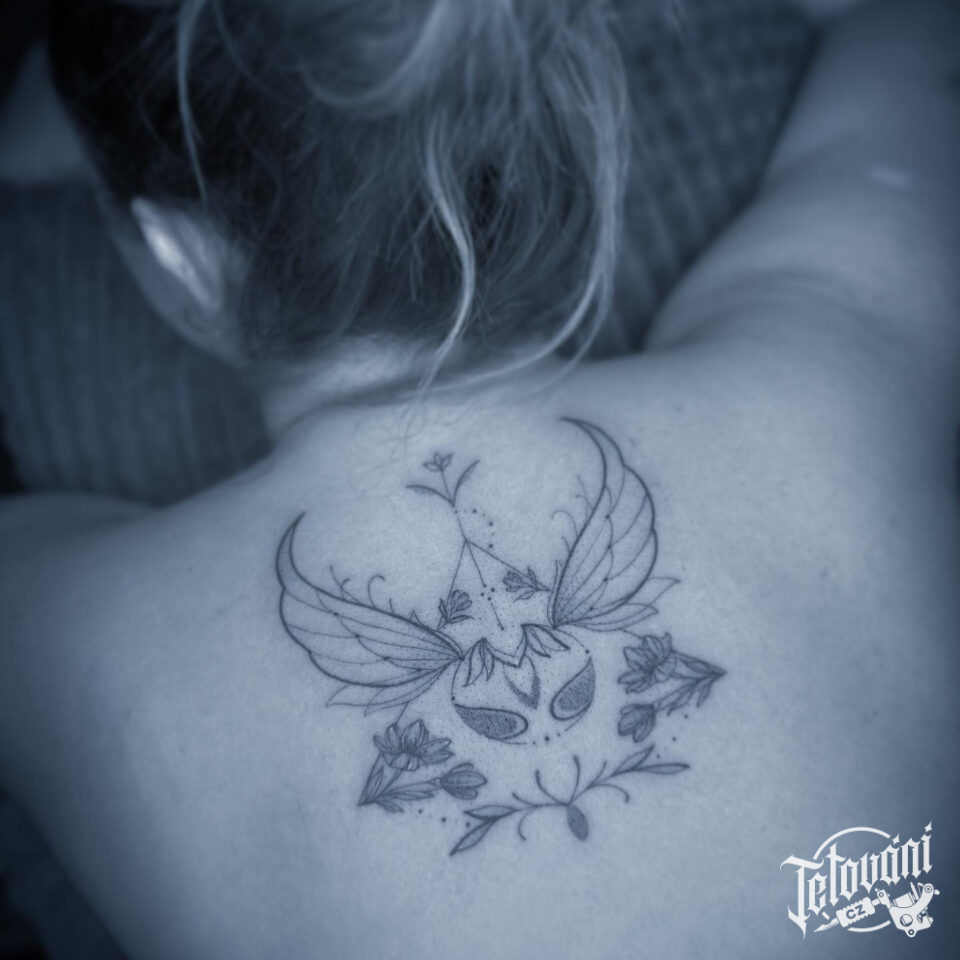 Tetování ornament s křídly mezi lopatkami