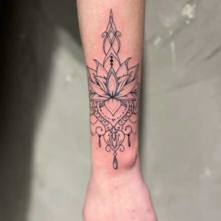 Tetování ornament s nápisem na předloktí