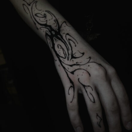 Tetování ornament s pavučinkami na předloktí