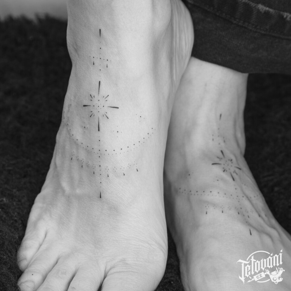 Tetování ornament s tečkami na nártu