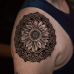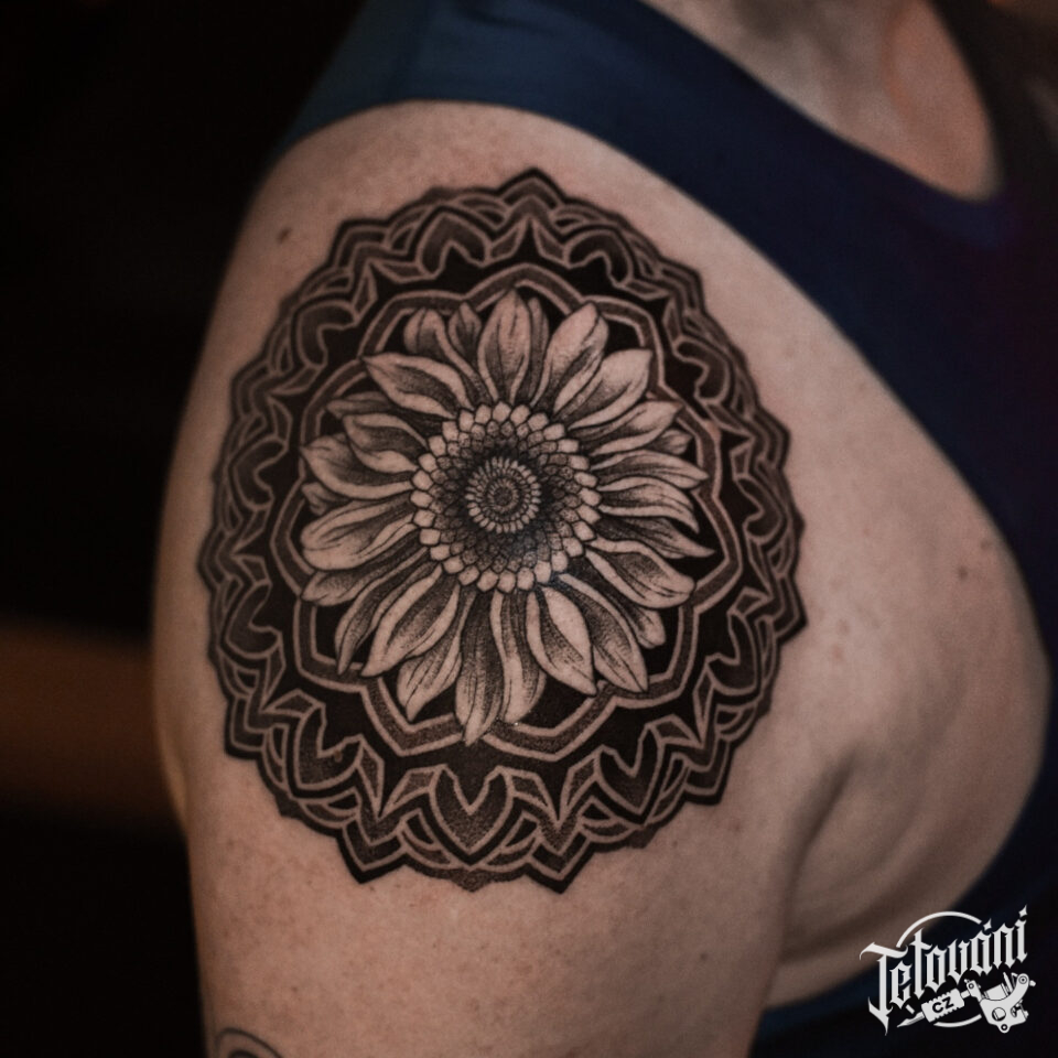 Tetování ornament se slunečnicí na rameno