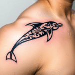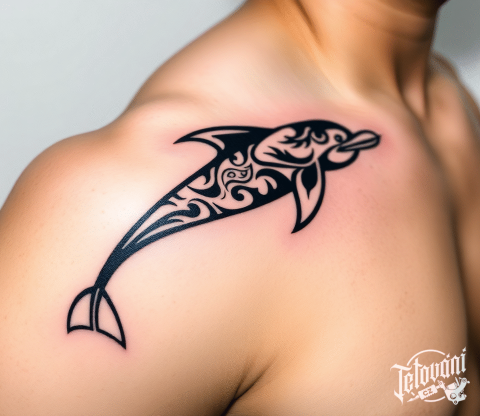 Tetování ornamentální delfín pod klíční kostí
