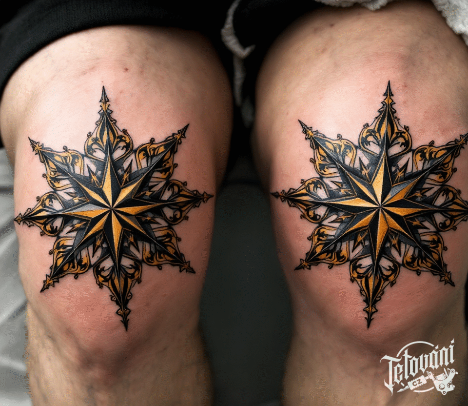 Tetování ornamentální hvězdy na kolenou