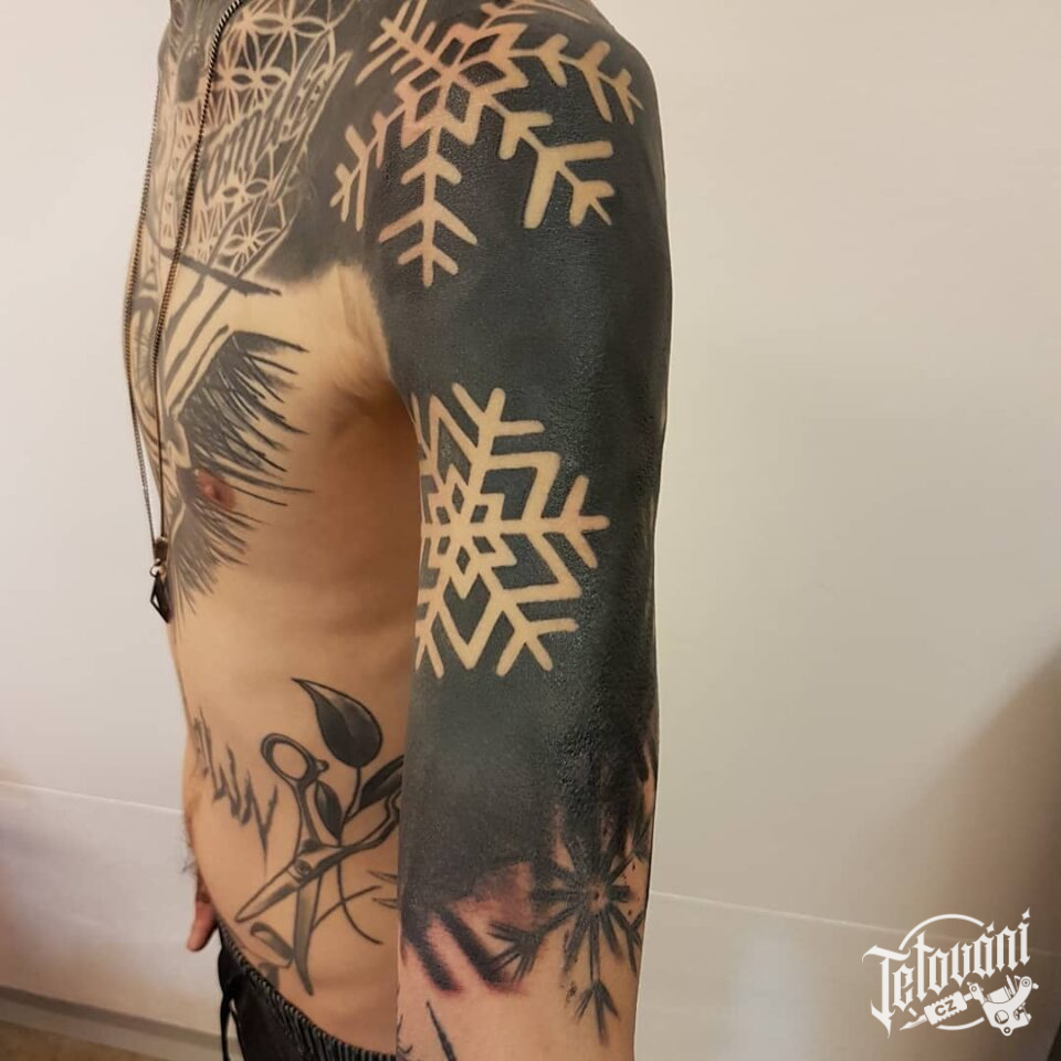 Tetování ornamenty a znaky a symboly, vločky na rukávu