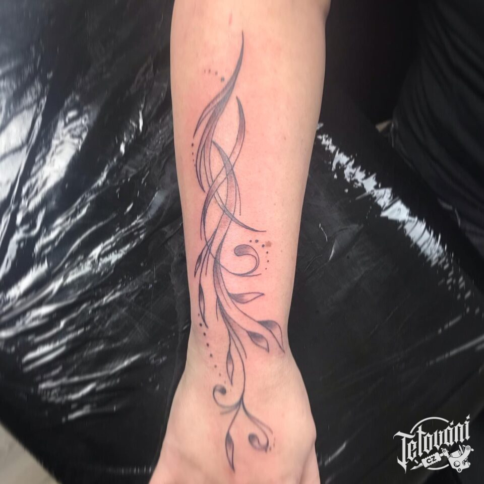 Tetování ornamenty, květiny na předloktí