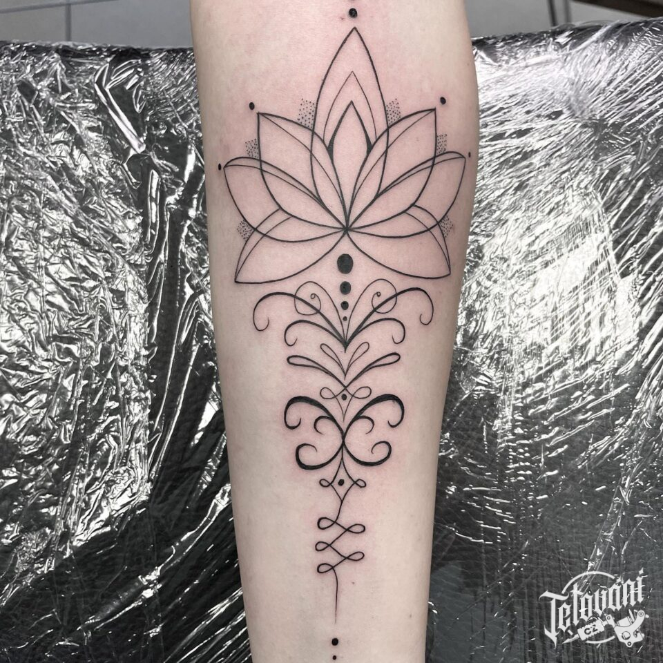 Tetování ornamenty, mandala Lotus na předloktí